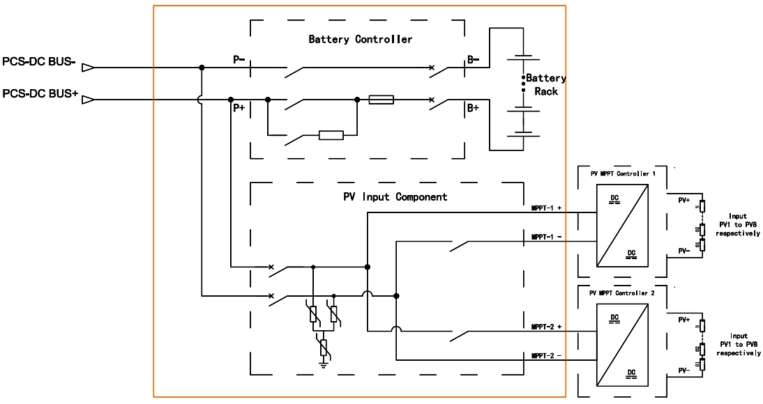 3. Akses PV DC yang digabungkan untuk memadankan pengawal MPPT dan bercakap MPPT ;